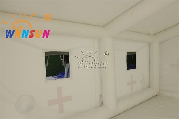 Winsun inflatable medical tent is made by very strong and durable 0.9mm PVC Tarpaulin material which makes the inflatable medical tent can be well used in very tough circumstance like desert or cold weather. It can resist wind of 17m/s and can be well used from-35℃to +65℃.