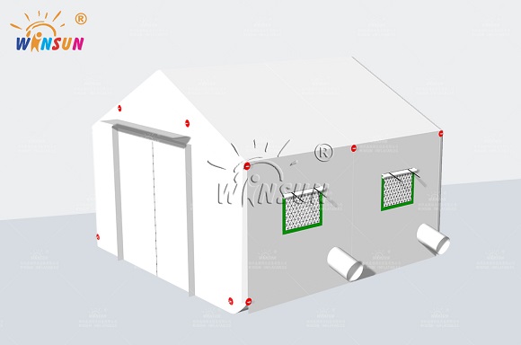 Winsun orange inflatable medical tent is made by very strong and durable 0.9mm PVC Tarpaulin material which makes the inflatable medical tent can be well used in very tough circumstance like desert or cold weather. It can resist wind of 17m/s and can be well used from-35℃to +65℃.