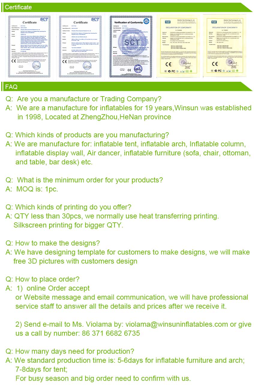 A: We test each product for 1~3 days to ensure the inflatable tents stitching seamed exactly well.